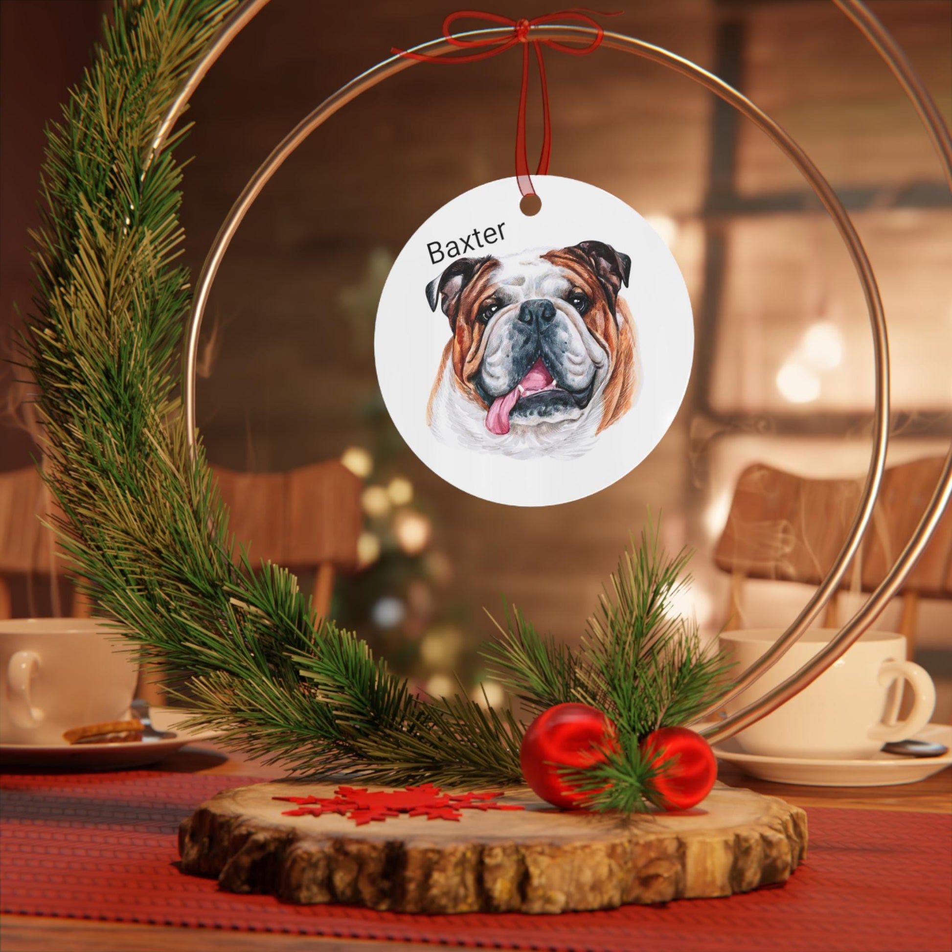 Dog breed Metal Christmas tree ornaments are durable and will bring holiday cheer for years to come. Print your festive designs on both sides of the white aluminum base, and we'll print them in high resolution with a glossy finish. Their surface is scratch and chip-resistant, so they can be stored together in the famous Christmas decoration box. Choose any or all of these four shapes – bell, tree, round, and oval. Note that there's one ornament per pack, and it already comes with a separate red ribbon for hanging.