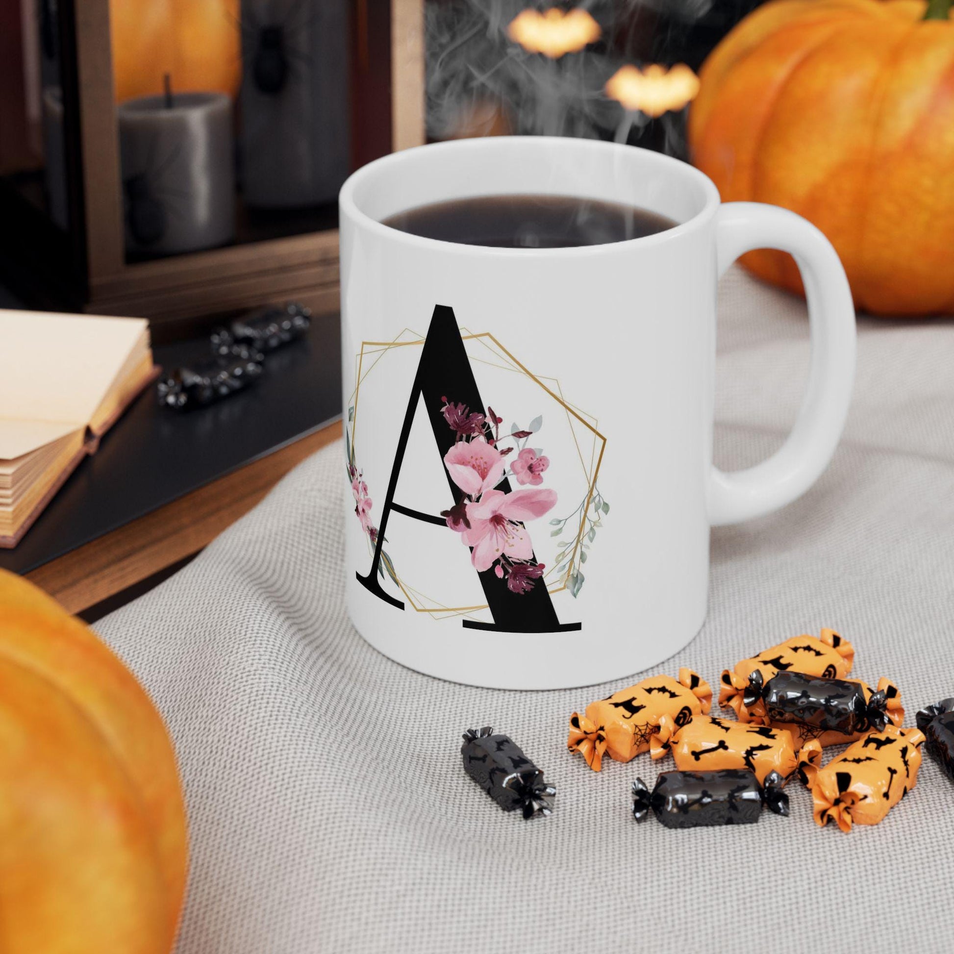 Monogram Mug, Personalized Mug, Initial Mug, Coffee Mug with Flowers, Butterfly Mug, Flower Monogram, Floral Letter Mug, Monogram cup, 11oz