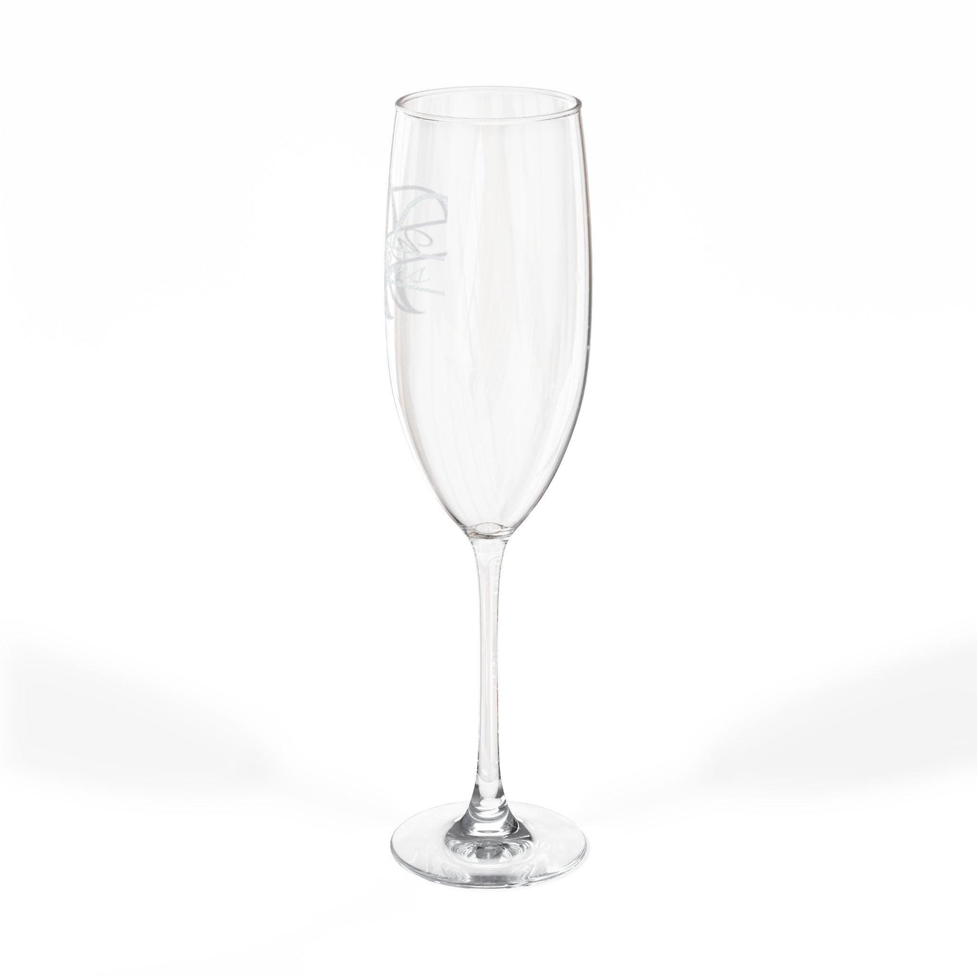 A slender, engraved flute that brings quiet elegance to celebratory moments. The clear 8 oz glass catches light and lets bubbles rise in a steady column, while the permanent etched design adds a refined, personal touch without overpowering the drink. Lightweight on the stem, balanced at the base — this glass feels at home in small gatherings, intimate toasts, and relaxed brunches. It slips easily into the dishwasher yet keeps its crisp etched detail, so you can reach for it again and again without worry. Hold it, listen to the fizz, and savor the small rituals that turn ordinary hours into memories.