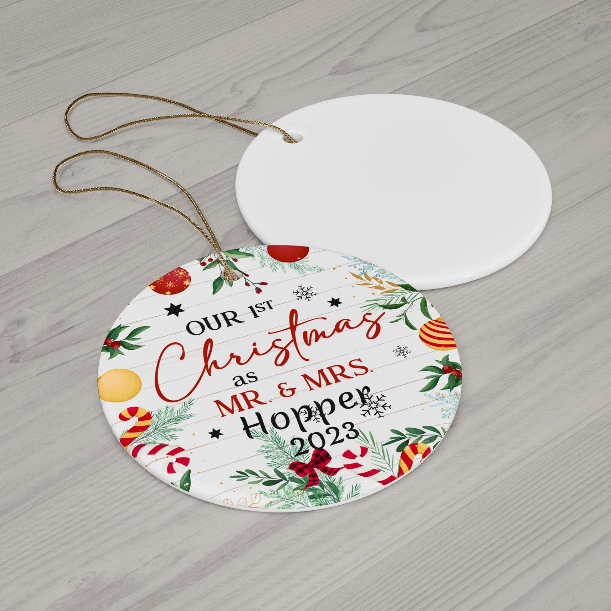 Personalized First Christmas Mr and Mrs Ceramic Ornament