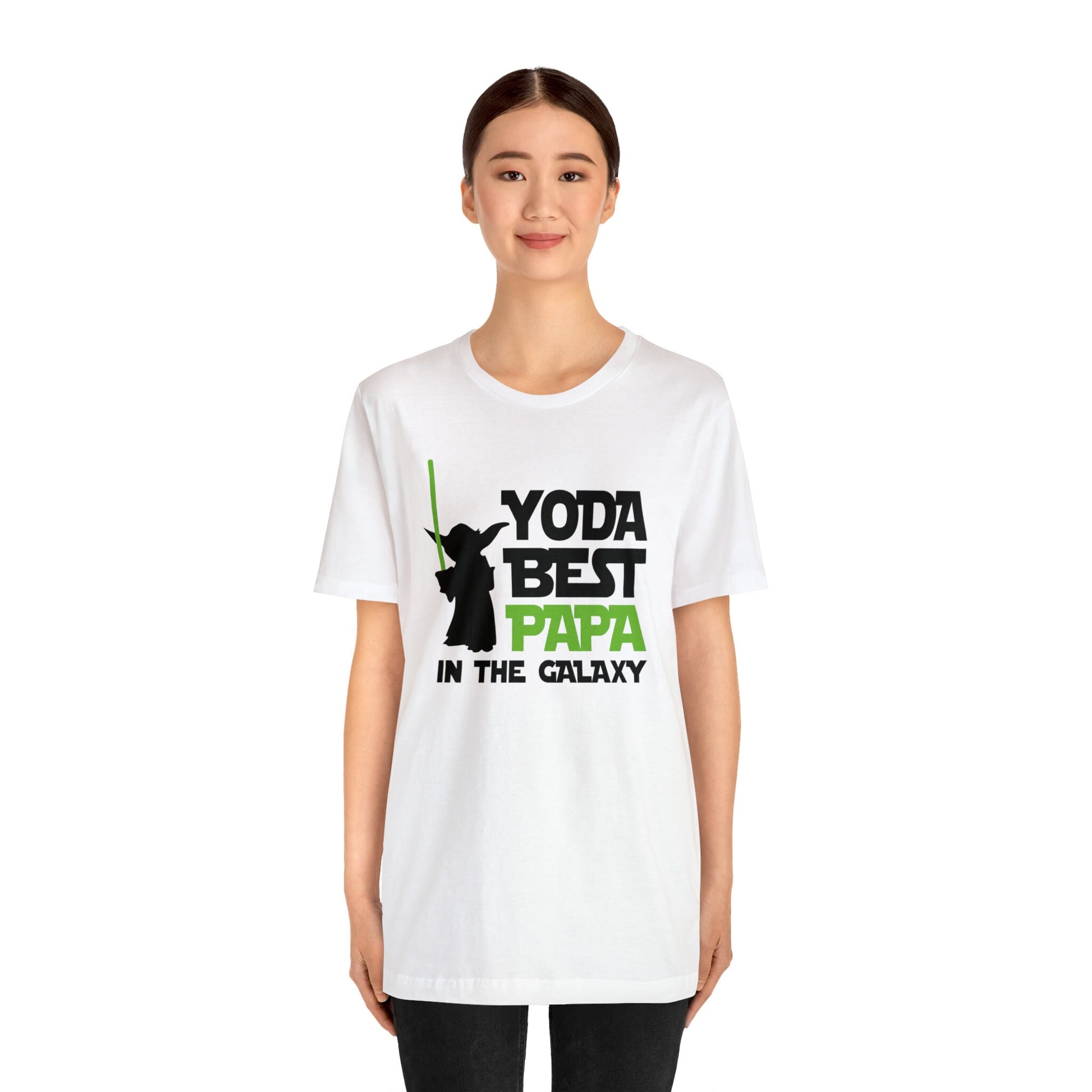 Your the best Papa, Yoda, Yoda best papa, best papa. fathers day, Unisex Jersey Short Sleeve Tee. This classic unisex jersey short sleeve tee fits like a well-loved favorite. Soft cotton and quality print make users fall in love with it over and over again. These t-shirts have-ribbed knit collars to bolster shaping. The shoulders have taping for better fit over time. Dual side seams hold the garment's shape for longer.
